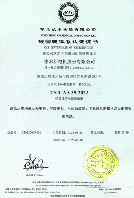 8月20日,哈電集團(tuán)佳木斯電機股份有限公司(以下簡稱“佳電股份”)順利通過華信技術(shù)檢驗有限公司認(rèn)證機構(gòu)審核,榮獲碳管理體系認(rèn)證證書,成為防爆電機行業(yè)首家獲得該認(rèn)證的企業(yè)。此次審核的通過,標(biāo)志著佳電股份在碳排放管理、綠色低碳發(fā)展方面邁入新階段。